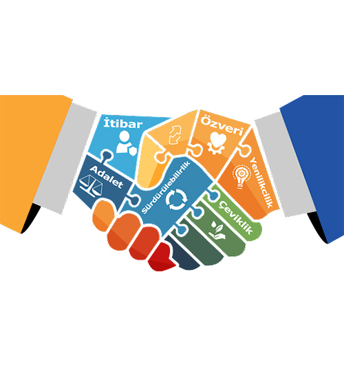 Bütünlüğümüz daha iyi iş, daha iyi yaşam felsefesiyle sürdürülebilir geleceğe yöneliktir.. Kazanımlarımızı işletmelerimizin var olduğu ve hizmet verdiği bölgelerin sosyal, kültürel, ticari ve teknolojik gelişimi için kullanırız. Bireyden fazla toplum için çalışmayı amaçlayıp toplum bilincinin önünü açan açılımların öncüsü olmayı amaçlarız. Çevreye, topluma ve insana yaptığımız her yatırımın varlığımıza ve gelişimimize olan katkısının bilinciyle topluma ve insana duyarlı davranırız.Adiliyet, çeşitlilik ve eşitlik kurum kültürümüzün esasıdır.